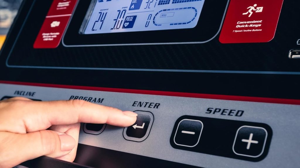 The LCD screen measures 6.5 inches and is easy to read. It’s simple and straight to the point, without any unnecessary extras. Below the screen are buttons that control speed, incline, and program.